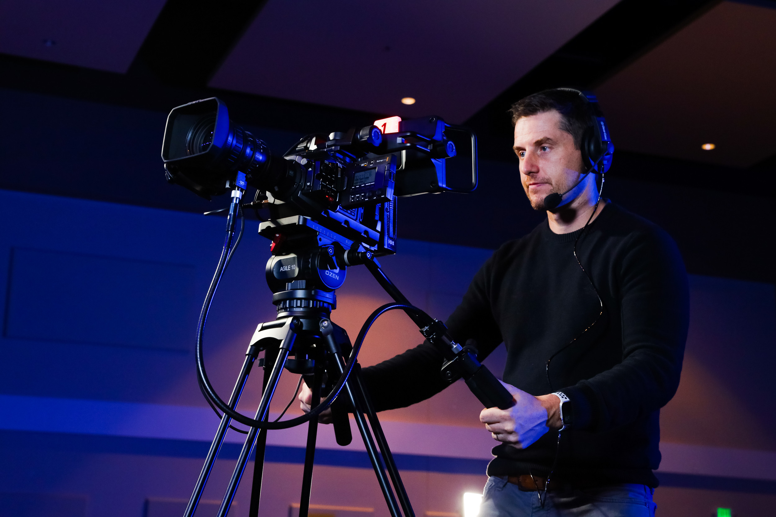 It depends on the event. A corporate keynote might use 3-4 cameras, while a large conference or concert can require 6-12+ cameras with jib arms, roaming operators, and robotic PTZ cameras. We'll design the right camera plan based on your venue, audience size, and goals.